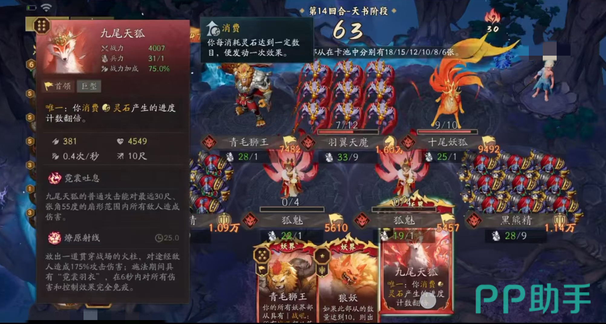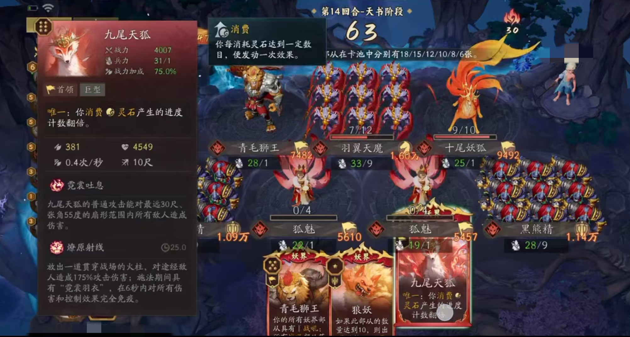 妖阵营的运作逻辑完全围绕“妖气”数值展开——该资源既是单位上阵门槛(如十尾需10点妖气方可登场),也是技能释放、羁绊激活与战力跃迁的关键支点。当前版本中,主流成型路径已明确分化为两条:侧重稳定运营的“消费流”,以及强调节奏压制与技能协同的“战吼流”。前者容错率高、节奏清晰,更适合入门玩家建立体系认知;后者上限突出、操作密度大,对局势判断与技能释放时机要求更高。无论选择哪条路线,十尾始终是妖阵营公认的幻神级核心,其神通效果与妖气值强绑定,达成条件后即可即时入场,显著强化整套阵容的持续作战能力与翻盘潜力。
