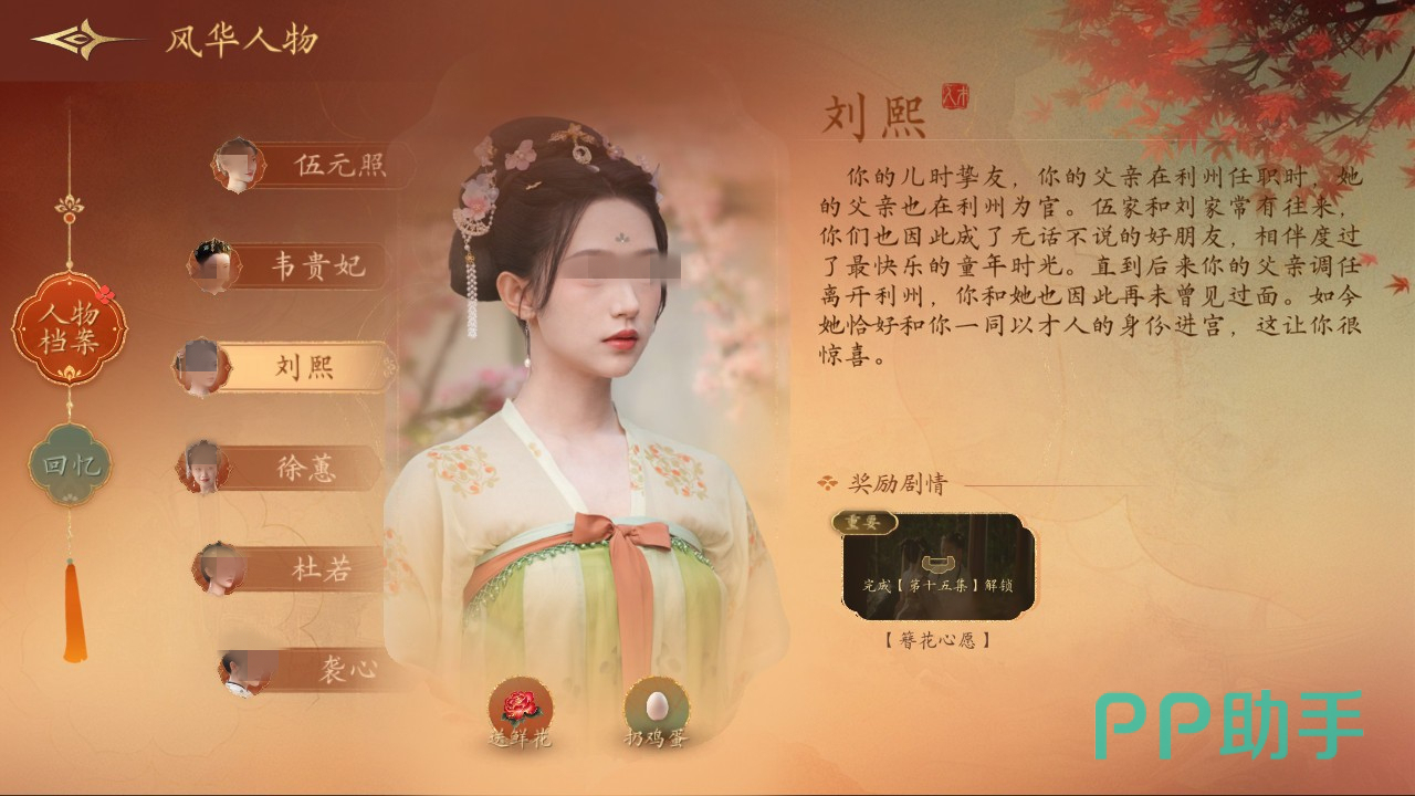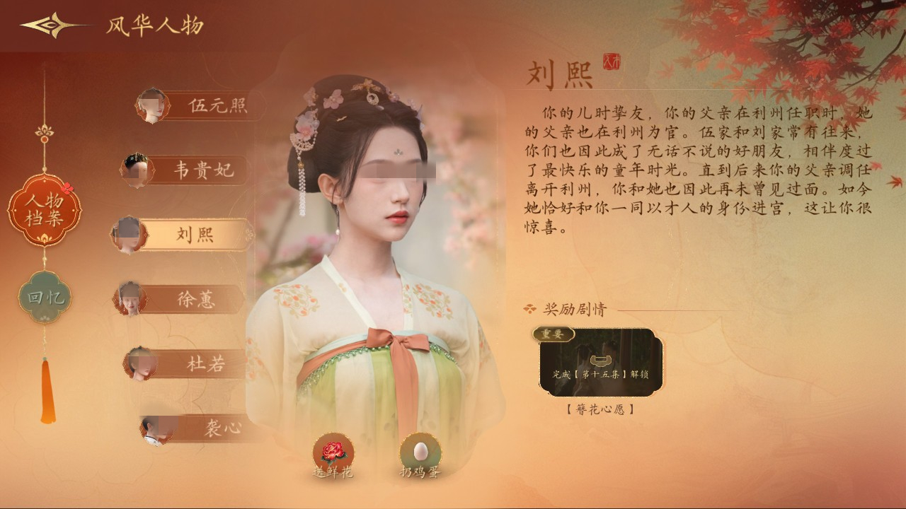 游戏机制强调策略性与后果反馈:每个选项均影响角色命运走向,包括对话措辞、服饰搭配、宴席座次等细节均可能触发不同事件链。系统内置权谋、人心、健康三大动态属性,通过送礼、传话、任务执行等方式提升数值,需实时关注状态变化以防崩盘。独创“风华人物”系统支持查阅人物档案、承接专属委托、维系关键关系网,在危机时刻可触发特殊援手。