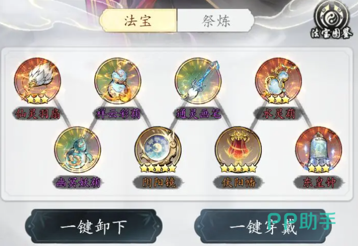 法宝系统具备双重成长性:一方面通过提升法宝库等级解锁更多佩戴槽位,最高支持5件法宝同时生效;另一方面法宝自身可进行升星操作,每提升1星即增强基础属性10%-15%。此外,装备系统采用分部位设计(头盔、护甲、武器等),各部位独立升级,确保属性成长精准匹配角色定位,避免资源浪费。