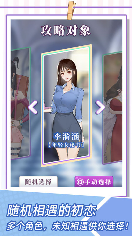 随机出现的各种各样的女孩子,成为了我们玩家的一次伴侣,你们需要依靠着自身的一个策略,在正确的答案中进行选择,从而走向一个最为完美的结局,可能你们也会选错方式,不过这样的挑战还是比较有意思的,专属的剧情也在不同的女角色身上出现,就看大家是否能够触发了。