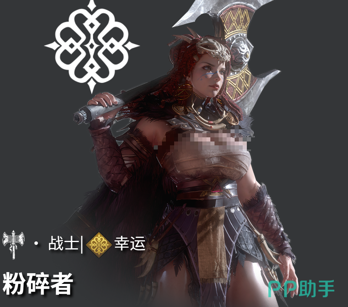 另一位幸运阵营英雄粉碎者,虽然外观为女性角色,但其职业设定为高爆发战士,专注于对单一目标进行强力压制。她的基础普攻“劈砍”即可造成自身力量与攻击力均为45%的物理伤害。释放能量技“死亡龙卷”后,巨斧进入高速旋转状态,任何接触该区域的敌人都会受到60%力量与45%攻击力的持续伤害。被动技能“狂战士”赋予她在生命值低于70%、50%或30%时分别获得10%、20%、30%的技能伤害加成,同时每秒回复对应10%、30%、60%的生命值,越战越强特性显著。另一个被动“野蛮蹬踏”在承受五次伤害后触发,对敌人造成50%攻击力的伤害,并附带击退2格及眩晕效果,具备出色的打断与控场能力。