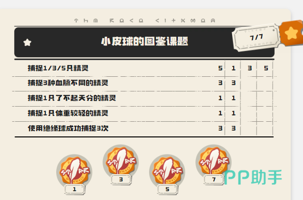 想要获得小皮球,必须先完成图鉴挑战系统中的七个阶段目标。初始阶段包括捕捉指定数量的精灵:分别达成捕捉1只、3只、5只的小目标。随后需完成进阶任务,如捕获三种不同血脉来源的精灵,捕捉体重较轻的个体,以及成功收服一只具备“了不起”天资评级的精灵。当这些条件逐步满足后,使用绝缘球对三只符合条件的精灵进行捕捉,即可推进任务进度。全部7项课题完成后,不仅能领取果实和魔法经验等奖励,还能解锁专属的精灵头像礼盒。此外,在后续培养过程中,小皮球的突破还需消耗电系材料与魔法粉尘等关键资源。