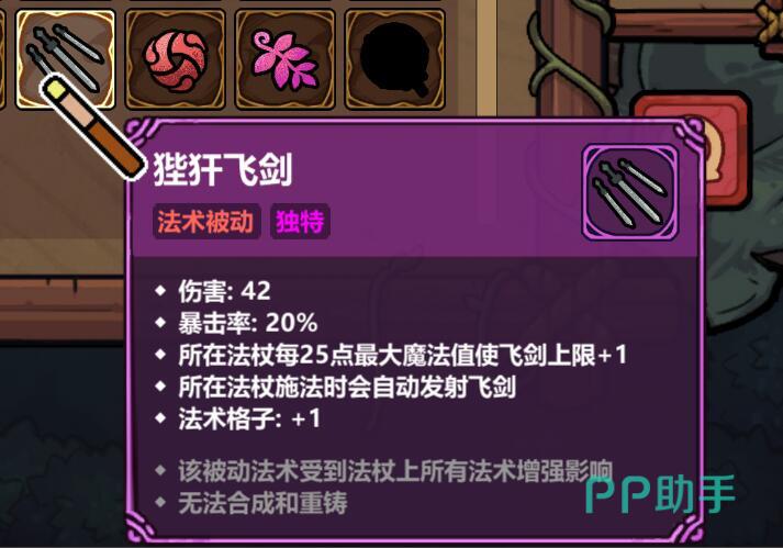 驻魔硬币(基础伤害60,攻击时弹幕变为金币弹幕,每次点击消耗20%金币,每枚金币提供+10%基础伤害):这是普攻流体系的终极目标之一。需在第二关使用具备爆炸效果的法杖轰击雕像,有较低概率获得。配合金币翻倍与生命换金币药水可快速积攒资源,形成滚雪球效应。若再搭配贪婪戒指,则能实现近乎无限的弹药循环,成型后堪称全游戏最畅快的build之一。