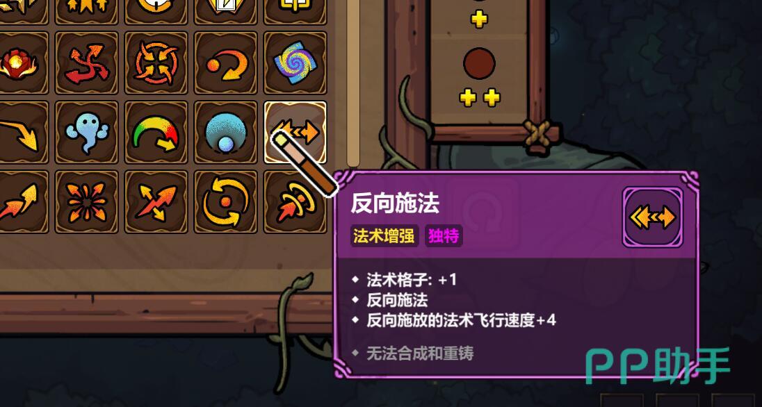 反向施法(飞行速度+4,施法方向反转):正面加成远不足以弥补操作难度提升带来的负面影响。除非构建“龟缩炮台”类固定输出点的玩法,否则极易导致输出延迟或误伤自身。盲目装备此法术会严重拖累战斗节奏。