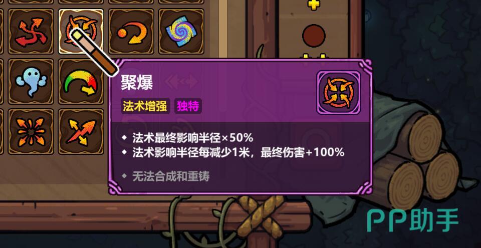 聚爆(法术增伤+100%,影响范围相应缩小):该法术是构建爆炸流派的核心技能。尽管其效果看似辅助性质,但在已配备追踪或鼠标跟随类技能的构筑中表现尤为突出。配合法球分裂使用时,单次施法可触发三次小型爆炸,极大提升清怪速度与群体输出能力。