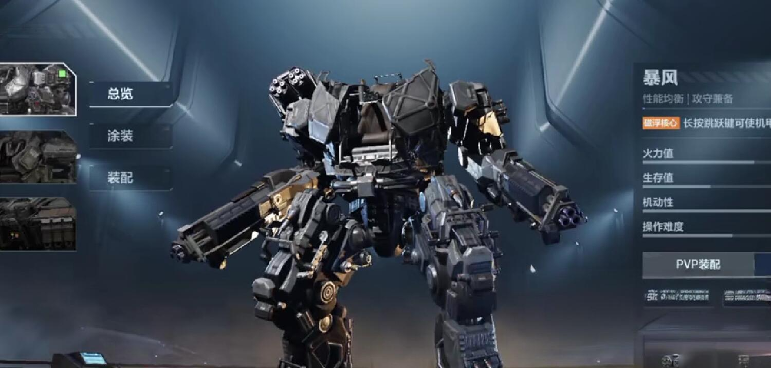 “暴风”以高机动性为核心设计逻辑,拥有全机甲阵营中最优的位移响应与空中悬停能力。长按跳跃键可触发持续约2.5秒的滞空状态,期间仍可自由转向并完成武器射击,有效规避地面集火与封锁区域。该特性使其在复杂地形作战与侧翼突袭中具备天然优势。推荐主武器为双联装啄木鸟步枪——弹道稳定、射速适中、后坐力可控;副武器建议选用T3型追踪火箭,具备自动索敌与中距离锁定功能,显著提升命中效率与爆发衔接节奏。