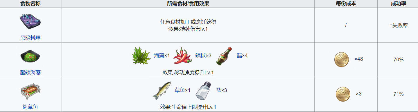 料理在游戏中是很有趣的一个玩法,玩家在游戏中通过采集材料进行烹饪和制作。制作出来的料理,往往会附加一些特殊的能力,对食用的角色进行一个增益buff的叠加。不断的升级制作食物,能够提高等级制作更高级的食物。