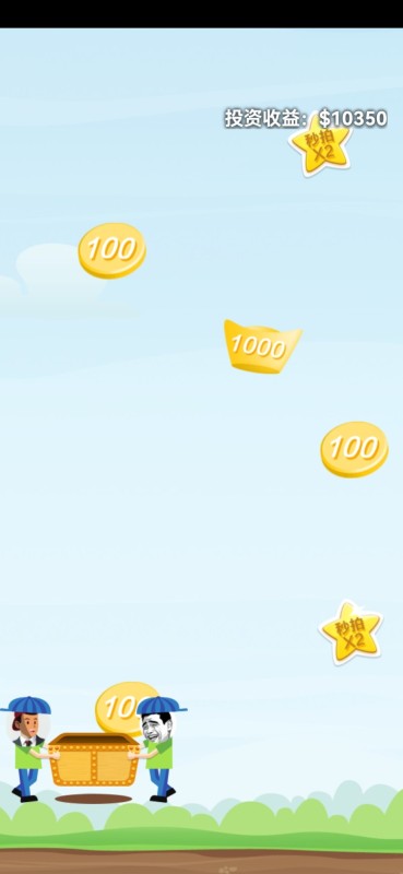 玩家可从多位风格迥异的投资达人中随心挑选一位,轻触屏幕即刻开启这场刺激非凡的财富之旅。在游戏世界里,玩家通过灵活滑动屏幕左右两侧,操控角色在场景中敏捷穿梭。天空中会不断飘落闪耀着光芒的金币,玩家需精准判断落点,让角色稳稳接住这些珍贵“宝藏”。然而,时不时会有冒着黑烟的炸弹夹杂在金币雨中坠落,一旦角色不慎碰到炸弹,游戏进程就会受到阻碍。
