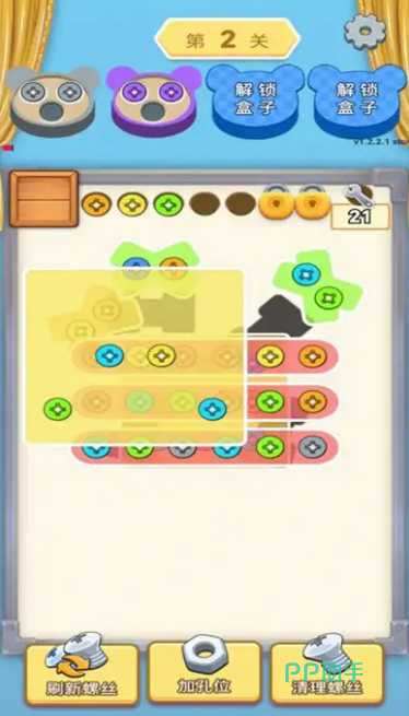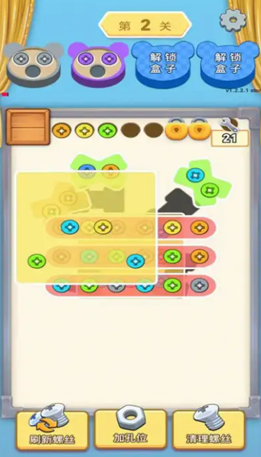这是一款融合了休闲益智与消除玩法的小游戏。在游戏里,玩家以拧螺丝的闯关形式展开挑战。具体玩法是,按照拧螺丝的操作步骤,把相同颜色的螺丝移动到对应颜色的箱子里,只有将所有螺丝都消除掉,才算闯关成功。在闯关过程中,玩家可以使用游戏提供的各种道具来辅助通关,不同道具具备不同的技能。要是玩家钟情于消除类游戏,那可算是找到了绝佳之选,而且游戏过程还能帮玩家缓解压力,让玩家轻松闯关。