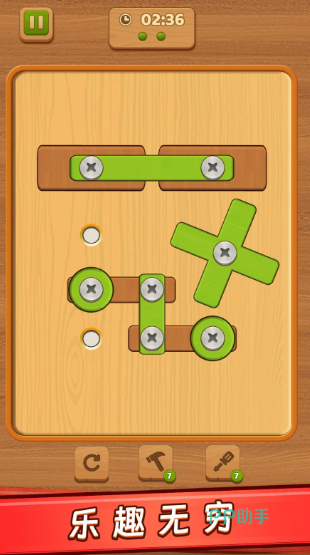 这是一款极为惬意的休闲益智游戏。在游戏里,玩家得仔细端详谜题的特征,挑选合适的螺丝并将其拧下,以此完成关卡挑战。这对玩家的技巧与思维能力可是不小的考验,尤其是思维的规划与安排,起着至关重要的作用,会直接影响闯关的效率和节奏。游戏有着简约清新的画面场景,就算关卡复杂,也不会在视觉上给玩家造成太大困扰,玩家能轻松获取场景信息,顺利推进闯关。感兴趣的朋友不妨下载体验一番。