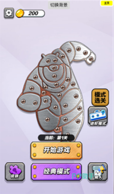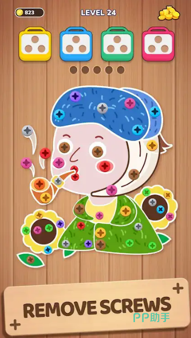 这是一款卡通风格的益智休闲游戏。游戏中,令人惊艳的木制主题与色彩缤纷的螺丝相互搭配,使得每一个关卡都极具视觉吸引力和艺术美感。游戏设计丰富多样,让玩家在解谜的同时,还能沉浸于螺丝与销钉的独特体验中,充分感受设计的魅力与乐趣。游戏将物理原理和策略元素巧妙结合,能够充分激发玩家的创造力。游戏能让玩家在挑战过程中始终保持新鲜感,不断迎接新的关卡挑战。