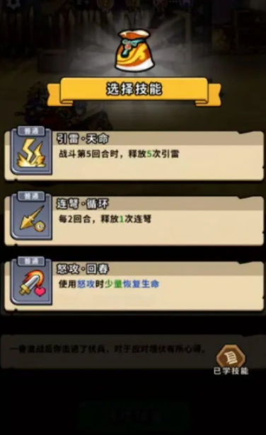 首先就是技能选择很重要,要遵循遵循”三步法则”,需要提升攻击以及上海的技能,优先的去选择触发的技能,其次要选择概率触发的技能等等。要没有攻击类的技能就可以选择增加防御就可以选择削弱对方的攻击能力。还可以看看有没有关于生命值的招式,可以利用这种方式增加了生命的技能。