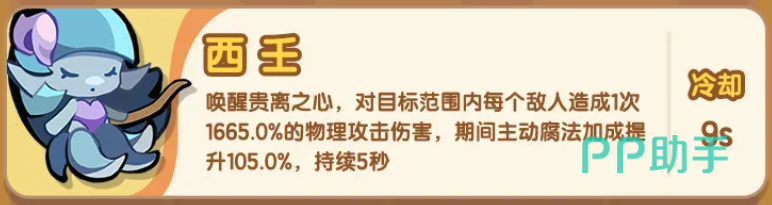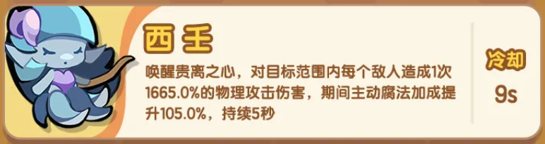 西壬定位为高爆发物理核心,激活「贵离之心」状态后,可对全体敌人施放一次高额单体物理打击,基础倍率为1665%。若配合腐化类增益效果,额外提升105%伤害,使其成为整套阵容中瞬时输出天花板。其技能机制强调主动施法节奏,需合理规划出手时机以最大化收益。
