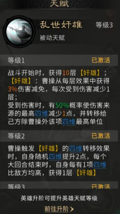 综上,《三国天下归心》中的曹操并非单纯依靠数值碾压的爆发型武将,而是以四维机制为轴心、贯穿攻防两端的战术枢纽。其强度兑现高度依赖玩家对属性压制逻辑的理解与应用,合理配置四维成长并搭配适配阵容,方能充分发挥其作为三皇级统帅的战略价值。