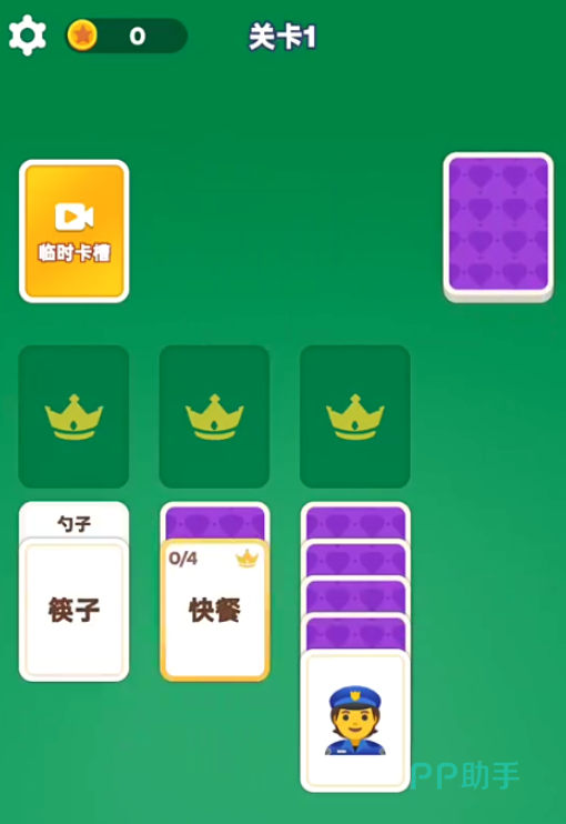 操作逻辑极为直观——仅需手指长按并拖动目标纸牌至对应分类栏位,系统实时判定匹配结果。关卡结构采用阶梯式难度编排:初期侧重基础辨识,后续逐步叠加步数限制、干扰牌、遮挡元素等变量,强化策略性与观察力。通关进度以可视化条形图形式呈现于主界面,即时反馈增强正向激励。