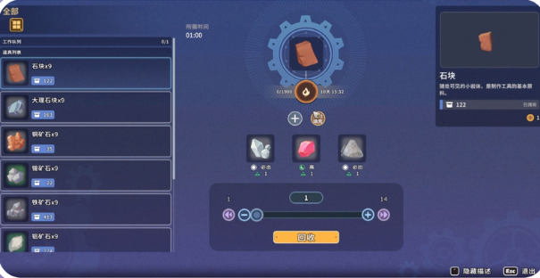 机械转化路径需前置解锁“原石回收机器”图纸,该图纸可通过协会系统获取。启用该设备后,玩家可将富余铁矿石投入转化流程。实测数据显示,单次投入5–10个铁矿石时转化成功率与单位产出比达到最优平衡。值得注意的是,该装置运行不消耗燃料,亦无耐久损耗,属于零维护型稳定产出方案。对于偏好基地经营、减少重复跑图的玩家,此路径可实现玫瑰石的按需供给。