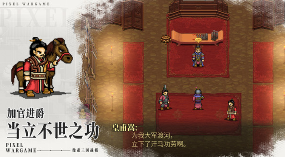 整个游戏是以刘备作为主视角,让玩家在体验游戏的时候,从涿县开始起兵,慢慢的发展成为帝王的过程。在整个视角中,玩家成为了刘备,会结识张飞,也会偶遇关羽,甚至会讨伐黄巾军,需要招募武将,并且通过战斗提升武将的等级跟属性,让自己的队伍变得越发的强大。