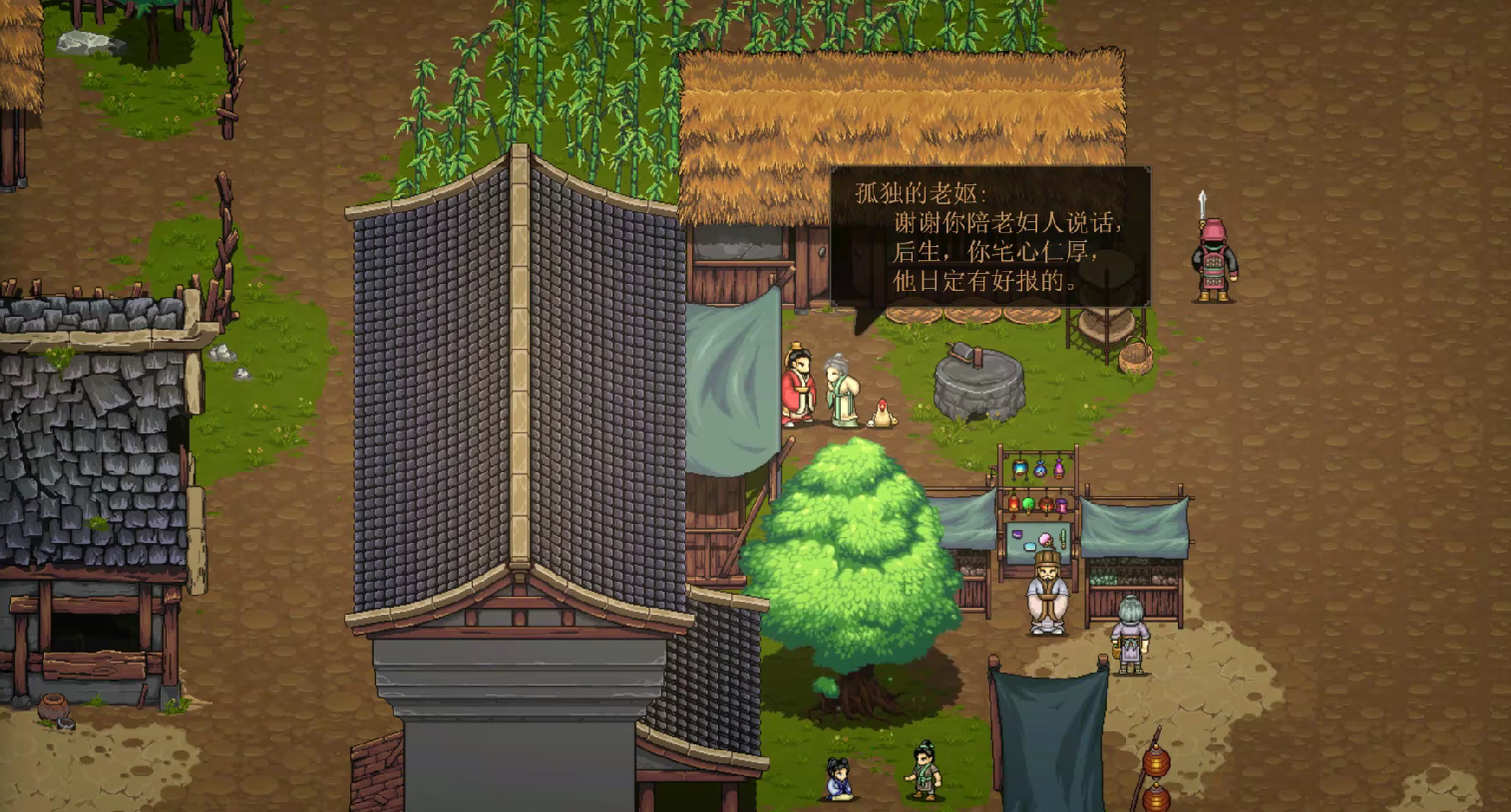 玩家如果来到了涿县,需要帮助刘备驱逐入侵的鲜卑族,这时候玩家要战斗,也可以通过对话来解锁隐藏的剧情。在战斗之前可能会跟npc进行互动,对话的时候会跟衣料坊的小偷,买菜的妇人,太学生等等角色进行互动。