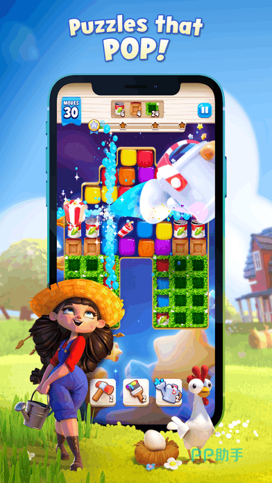 《HayDayPop》作为卡通农场的续作,也是HayDayPop在本年度发布的一款新游,其中把三消元素和经营理念,进行了独具新意的结合,并内置了诸多重彩纷呈的道具类型,在关卡中不仅首次加入了独具特色的局内反馈机制,还融入了巧思妙想的障碍元素,首创引入了连胜系统,玩家通过消除去提升农场的规模,无论是养花还是种菜,都将赋予大家一片悠然自得的乐土。