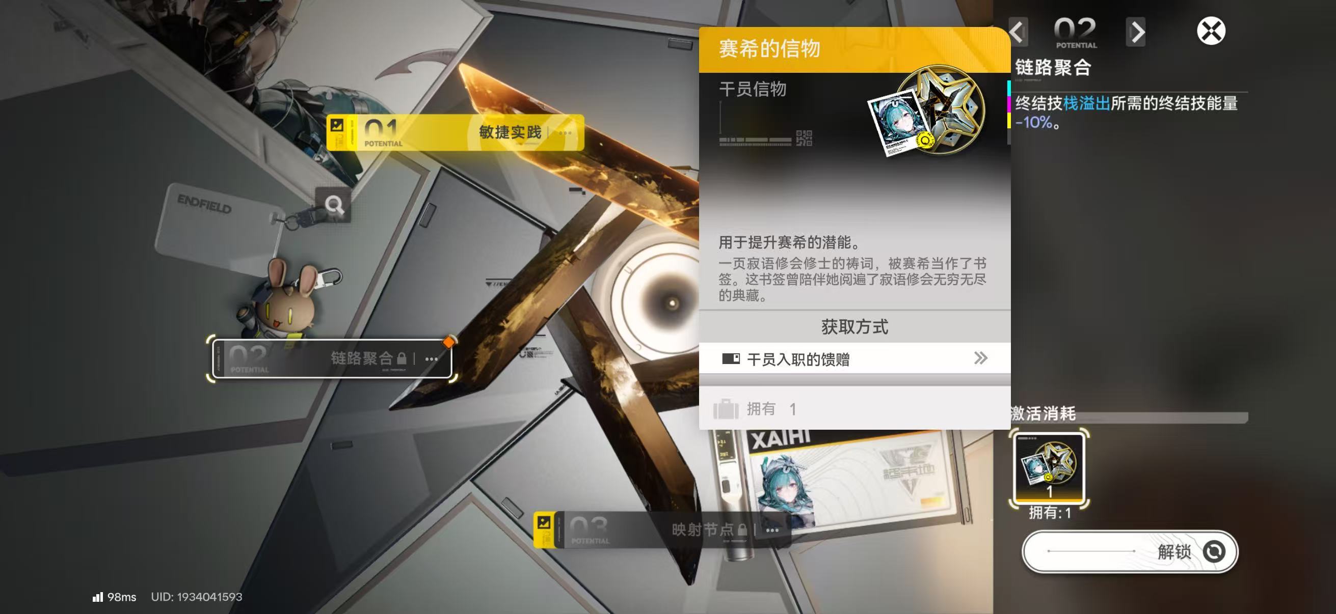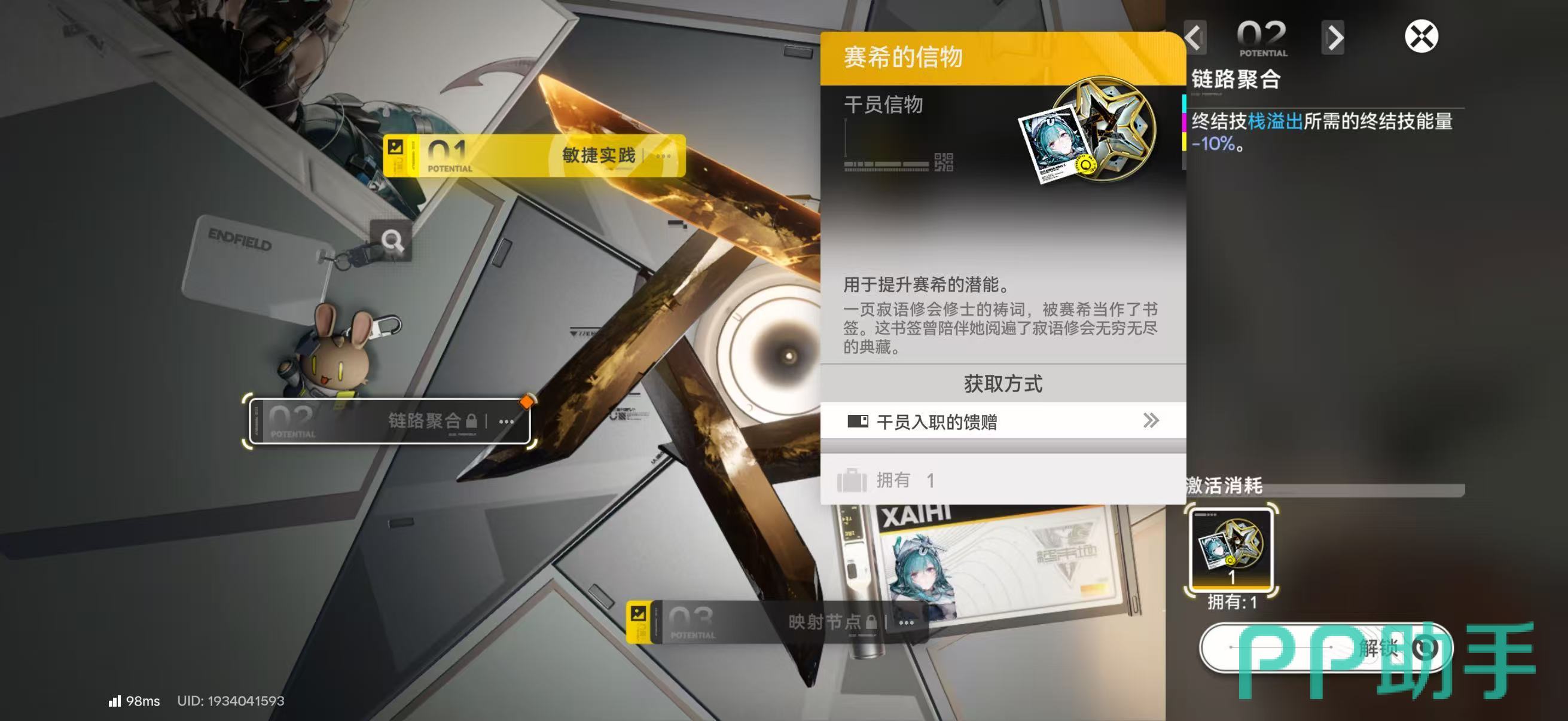 完成信物收集后,玩家需进入【干员】→【潜能】界面进行操作。信物数量决定可解锁的潜能层级,但需注意:潜能点的开放还受干员等级制约。当干员等级达到20级时,可进行首次突破,突破后等级上限提升至40级,并同步开放后续潜能节点。因此,合理规划升级、突破与信物投入节奏,是优化战力成长路径的重要前提。