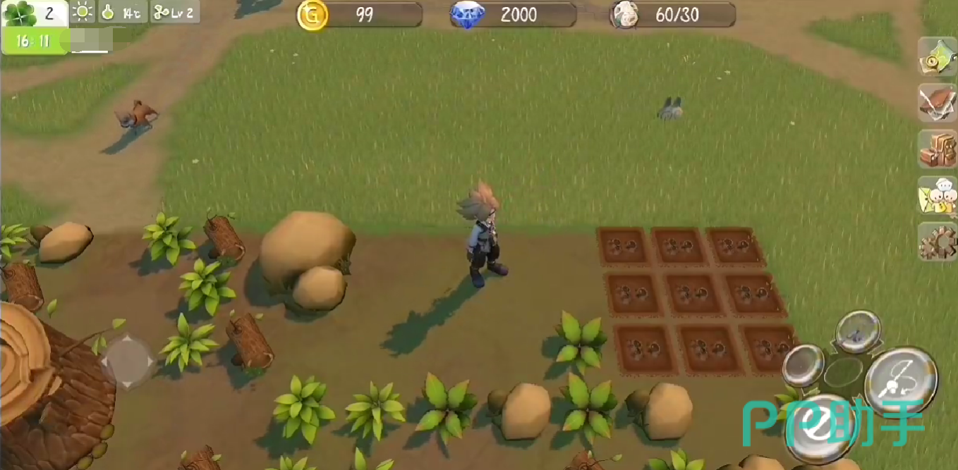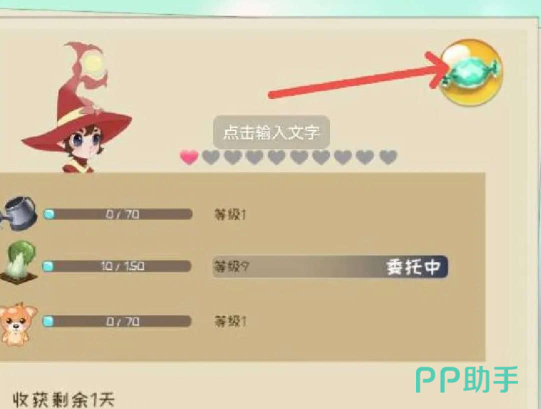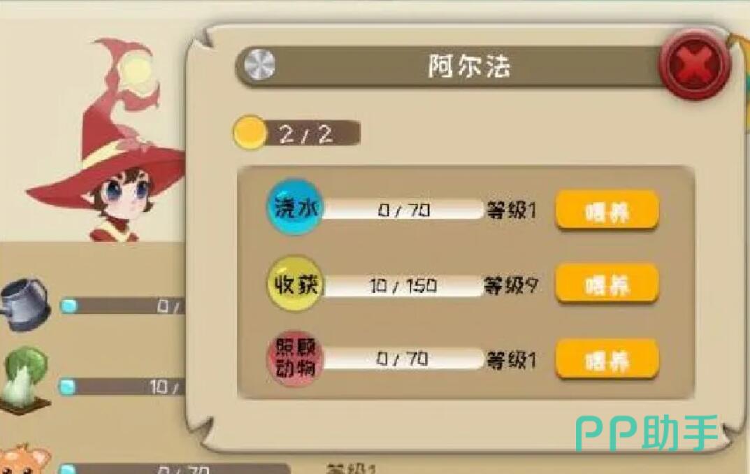精灵功能入口位于游戏主界面右上角——右侧竖排图标中的第三个,即“笔记本+羽毛笔”组合图标。点击后,在左侧列表中选择第二项“戴帽子的头像”,即可进入精灵管理中心。该界面集成全部精灵操作:任务指派、任务撤销、技能升级与状态查看。精灵技能共三项:升级、浇水、收获、照顾动物。每日登录赠送2颗免费糖果,专用于上述技能的经验累积。零氪玩家仅需坚持每日领取,即可稳定推进核心技能成长。