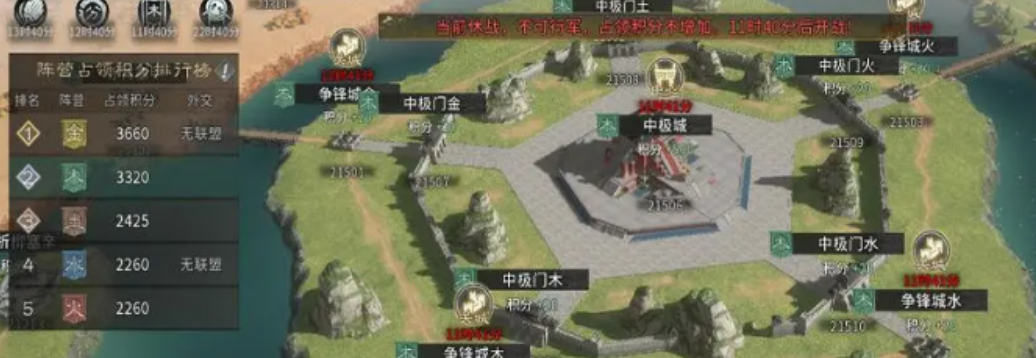 胜负判定以阵营总积分为核心指标,积分直接关联所占领城池数量。活动结束时,积分排名第一的阵营将获得顶级奖励。为提升战略弹性,系统支持阵营间正式结盟:由各阵营“纵横家”(即战功最高玩家)作为代表发起谈判,达成协议后次日生效,持续24小时。结盟期间双方不可相互攻击,且联合进攻第三方城池所得积分均分,有效打破僵持局面,推动战局再平衡。