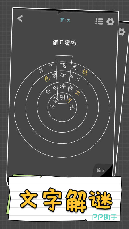 一座充满挑战的文字迷宫,玩家在层层线索中寻找隐藏的答案。谜题设计融合诗词、成语与抽象符号,通过拆解、重组与推理,让汉字的结构与含义在脑海中交织成网。线索的铺设巧妙而富有变化,有时是字形的微妙关联,有时是词义的深层递进,每一次解析都像拨开迷雾,逐渐触及真相。