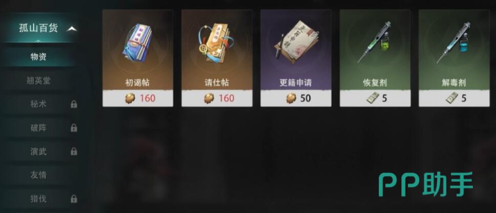 为提升操作效率,游戏内设快捷入口:点击主界面右下角【功能】按钮,在弹出菜单中选择【商城】→【孤山百货】,即可免去跑图步骤直达交易界面。所有商品按功能维度分栏陈列,包括“战斗补给”“状态解除”“材料合成”三大类,高频使用道具均置于首屏,便于快速选取。