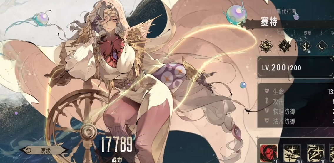 对于策略性的游戏来说,一名强大的治疗型角色是必不可少的,因此小编第1个为大家推荐的就是赛特。她的战技织命者默示,cd为10秒,将会随着技能等级的提升而减短cd。在施展之后,将会自动选中己方生命值最低的一名队友,并对其造成一次治疗效果,具体的回血量为赛特自身血量的13.6%。特典美德恩典,当己方存在debuff时,将会对其进行净化,同时进行一次治疗,如果己方进入血月状态,那么在一秒之后将会净化己方所有队友一个debuff。
