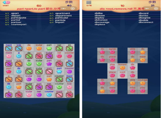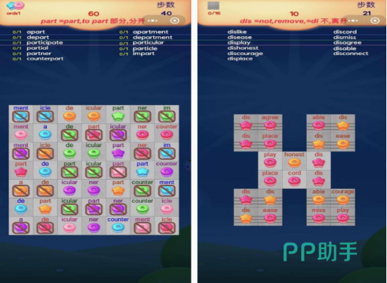 作为首款英语三消类型的游戏,利用英语词根词缀结合的方式,可帮助你顺利的进行消除。通过这种方能帮助大家更好地了解英语单词,也能提升自己在英语这方面的水平。在每次闯关的过程中,你可了解一下所给出的提示内容,通过了解每个单词表示的含义以及拼写的顺序以后,可帮助你享受游戏所带来的快乐,还有超多甜蜜的图形。