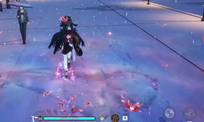 独创能量系统“非闭合时计”赋予角色战术暂停能力:激活后范围内敌方单位进入时间静止状态,玩家可自由位移、调整站位或规划下一步行动。终极技能“浮世来潮”需在“非闭合时计”能量满格时释放,期间武器形态由伞转为巨刃,攻击模式切换为高覆盖率多段斩击,每段命中均触发独立伤害判定。另一关键技能“今景复映”无需能量蓄满,仅需当前能量值≥60即可发动,释放后生成多轨位移轨迹,实现灵活突进与规避。