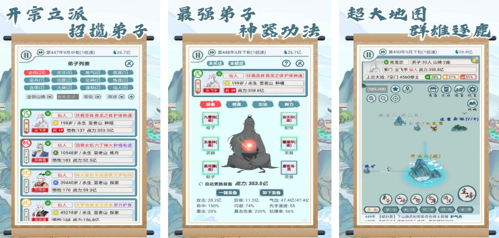 上古宗门这款游戏作为模拟修仙类型的游戏,在游戏当中玩家也需要策略经营。毕竟玩家这时候成为了宗门的宗主,他们为了让这个宗门更加发扬光大,需要招募弟子,也要让自身的实力变得更强。玩家在里面可以学习法术以及各种各样的技能探索上古的神秘之处。玩家还可以培养弟子的天赋跟技能,根据弟子的特点来合理的培养,提升他们的实力。