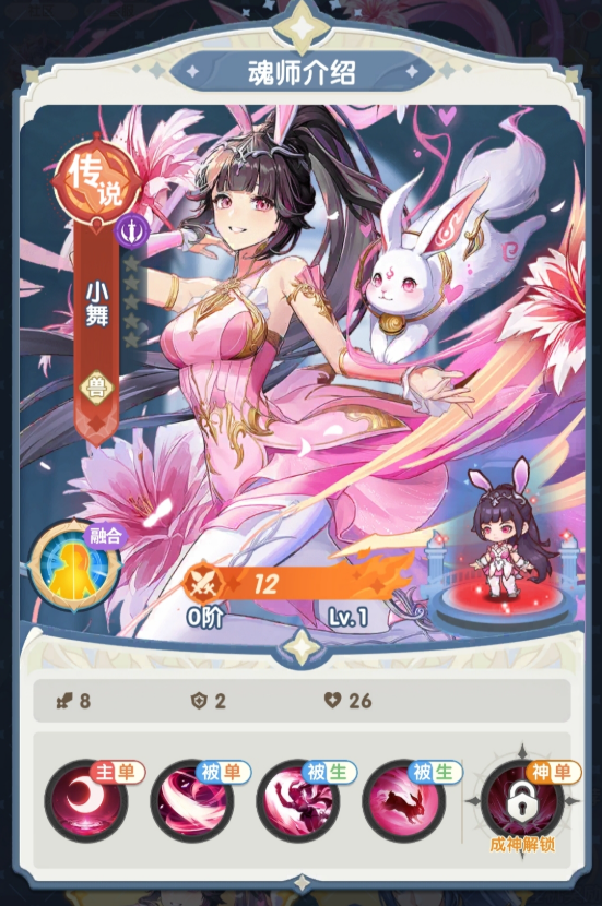 小舞作为女主角,定位为高机动性的敏攻型魂师,拥有极快的出手速度和连击能力。她的技能体系侧重于单体爆发,通过多段打击实现持续压制,能够精准针对敌方关键单位进行清除。在对抗高威胁目标时,可自动触发武断效果,最高可叠加至900%的惊人伤害倍率。同时具备生命回复机制,大幅增强生存能力,即便身处逆境也能保持持续作战优势。