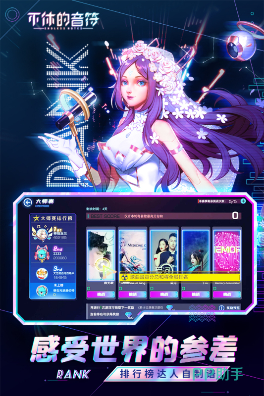十大最难音游大全盘点,当眼前的音符如雨点般落下,如何去进行应对呢,今日带来的游戏令你的指尖发烫,他需要你在瞬间都做出极速响应的判断和操作,需要你每一次的操控都精准的踩在音乐的节拍之上,让你感受真正极致挑战的最难音游,接下来一起踏上这场与众不同的音浪狂潮吧。