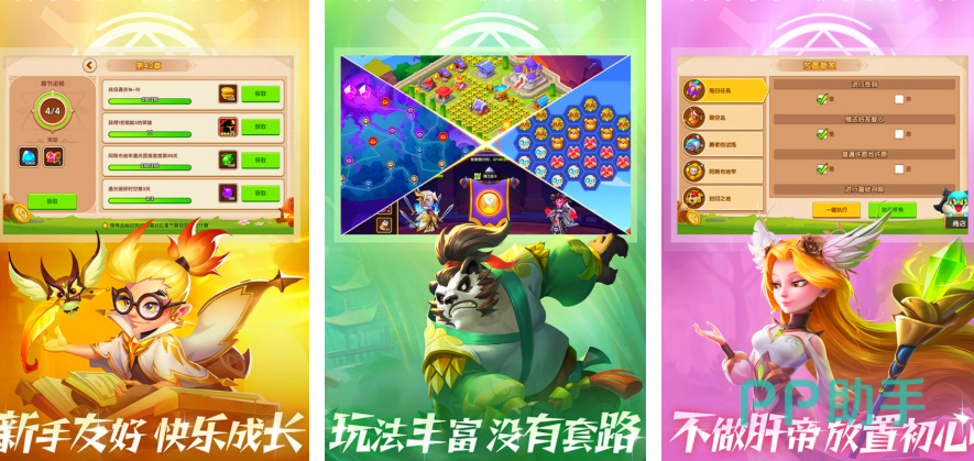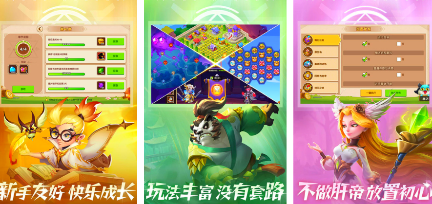 无需肝氪同时包含丰富策略玩法的挂机挑战类游戏,玩家福利丰富,主要战力角色都可以通过活动来免费抽取。玩家只需要搭配适当的角色组成冒险团,所有战斗挑战关卡都可以挂机进行。同时游戏内还有多种解谜元素、消除玩法、回合制对战等小游戏,享受到丰富多样的探索体验。