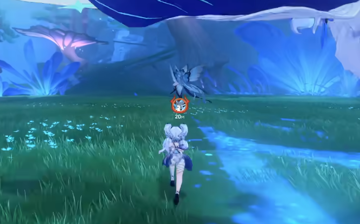 雾叶密林是新芽山谷的关键子区域,森彩灵蝶在此作为限定BOSS登场。该Boss具备严格天气触发机制:仅在晴朗天气下现身,雨天会导致角色飞行能力失效(翅膀浸湿),故玩家必须提前观测气象系统再行进发。其外观设计兼具琉璃质感与蝶翼流光,一旦被侦测即刻进入战斗序列。战斗共分三阶段:首阶段以大范围水浪冲击为主,推荐采用侧翼或背击战术规避正面伤害;