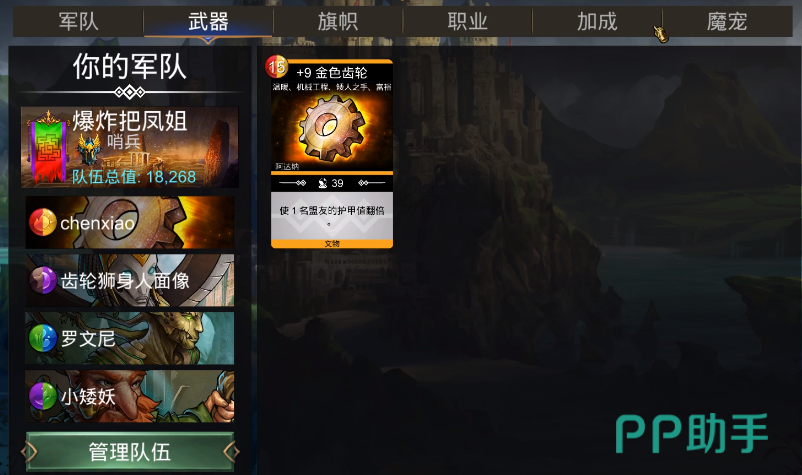 在游戏里队伍的搭配是非常自由的,大家可以随意根据需求组建队伍,这些队伍的能力,会根据角色的不同选择发生变化,所以这就要求玩家,在选择角色组建队伍的时候,需要充分考虑每一个成员的特性,如果要进行组队的话,会有多个不同的流派类型可供玩家选择,首先就是诅咒毒杀流派,在这个流派中,玩家可以选择神话级别的天蝎王加上幽莱雅莉,然后搭配小矮妖和山脉粉碎者,这样组合之后可以让整个队伍的战斗力变得更强一些,除了角色之外还需要选择装置,大家可以选择两个棕色旗帜,一个紫色旗帜,加上四季徽章和自己喜欢的武器即可。