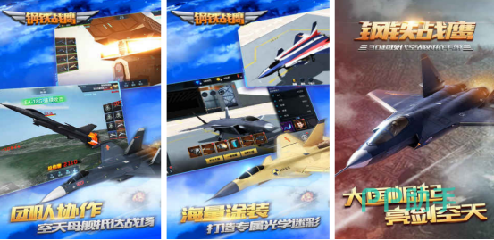 采用3d的高清画面进行创作,还以空战作为主要的题材,在这里将为玩家提供出了大量的战机类型,从古代到现代,应有尽有,玩家可通过收集战机的方式,展开振奋人心的空战场景。这里每种战机的操作方式以及攻击实力都完全不同,玩家可以驾驶着战机抵达到现场,也可来回穿梭在蓝天白云之间,可通过团队协作的方式成为战争中的胜者。