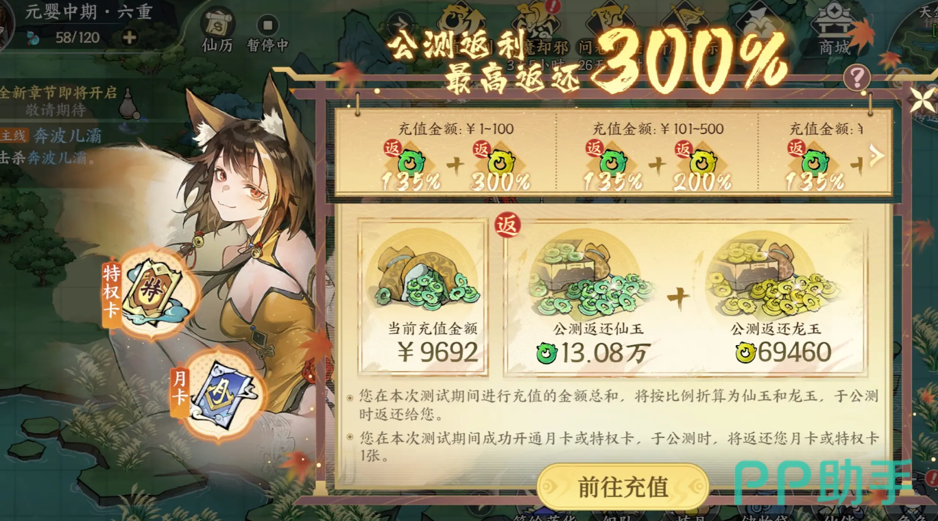 上面的这一些内容,就是小编这次给大家专门带来的,掌门下山试玩详解的全部了,在二测期间,还增添了新的特权卡,玩家可以通过充值激活的方式,来获得更多的体力数值,希望看完这次内容的小伙伴们,可以实际进到游戏当中,体验一下哦~