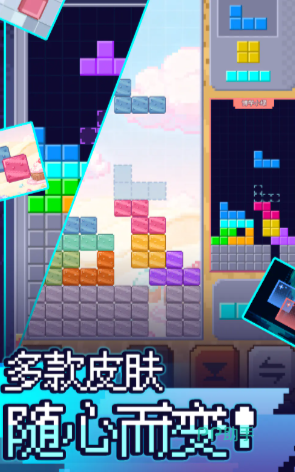 多人实时对战是本作的核心亮点之一。系统支持毫秒级匹配,可与全球玩家展开3分钟快节奏对抗。消除瞬间的音效反馈清脆利落,配合紧凑的节奏变化,带来强烈的临场操作快感。像素风格画面干净明快,UI布局简洁清晰,支持自定义对战背景与方块主题,告别千篇一律的视觉疲劳。无论是挑战无尽模式冲击个人最高分,还是双人PK比拼预判与干扰策略,各模式均围绕“易学难精”的设计理念展开细节打磨,贴合不同年龄段用户的操作习惯与心理预期。