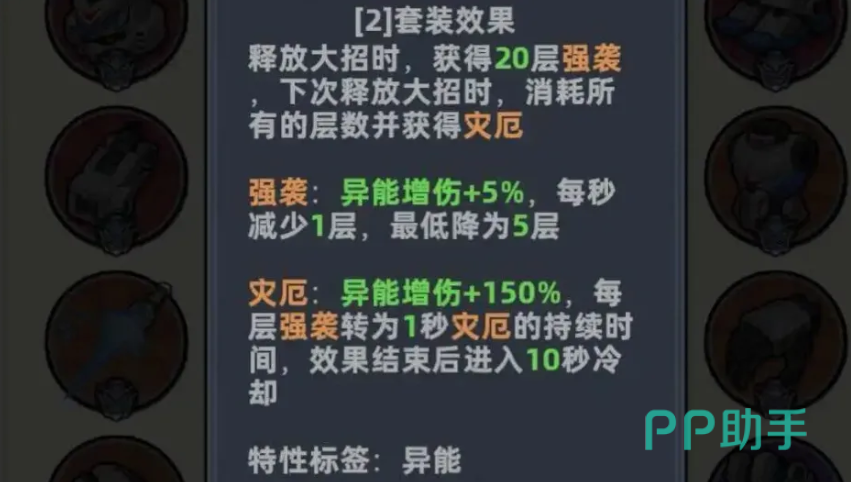外骨骼配置的底层逻辑始于英雄属性适配。需优先确保所选套装词条与角色神话定位兼容,尤其要覆盖全类型伤害加成——这是所有高阶配装的前置基础。在此前提下,核心词条应锁定“钻头”方向。该词条不依赖品质等级,泛用性强,适配技能流、异能流、动能流等全部主流体系,在PVE环境可稳定压低小怪群伤阈值,在PVP场景亦能维持持续压制节奏,避免因频繁更换核心词条造成资源浪费。