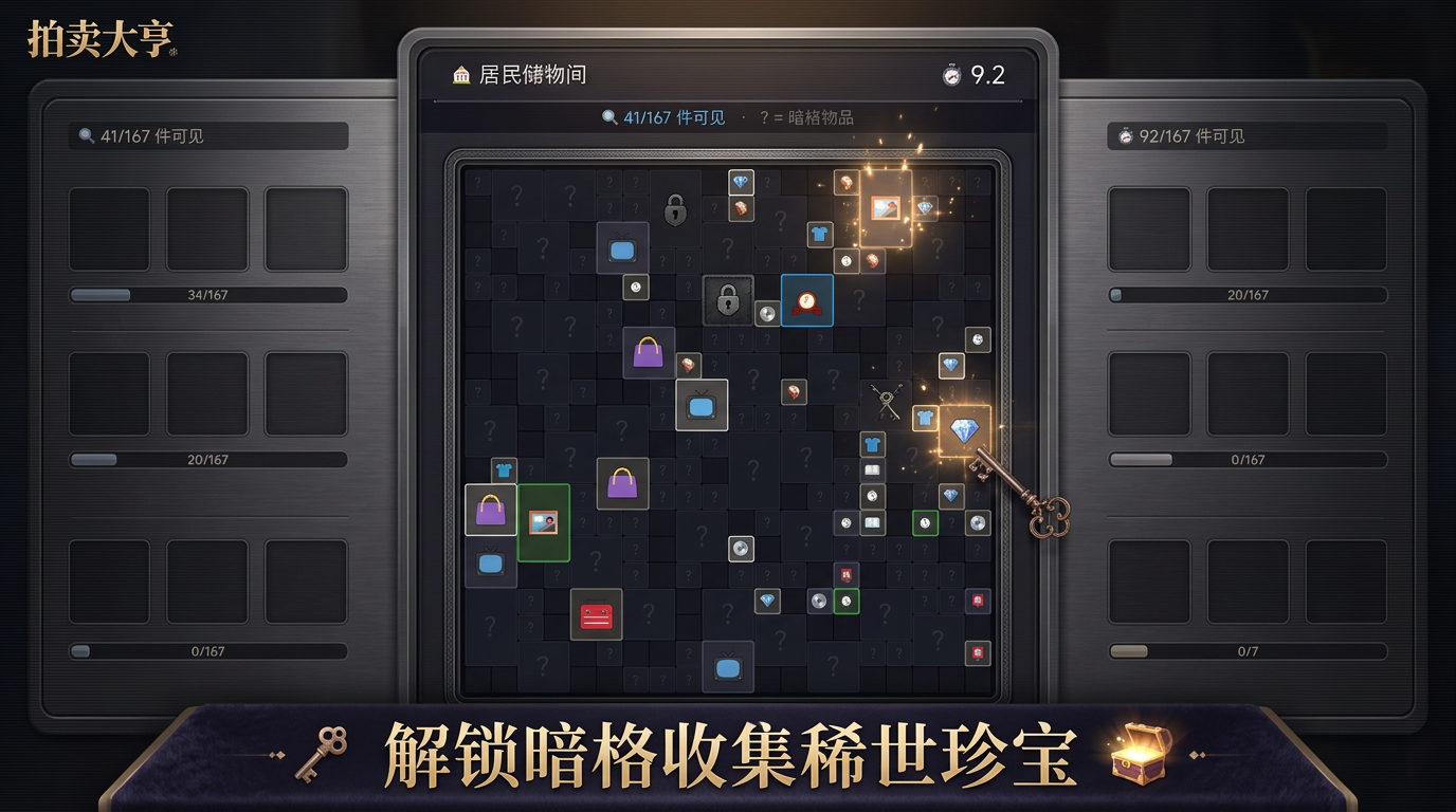 游戏采用阶梯式内容解锁机制:初始阶段开放居民储物间,引导新手熟悉基础操作;随着等级提升,陆续解锁古董阁、密室金库等高级场景。每个仓库均采用局部可视设计——仅展示部分物品轮廓与模糊标签,其余需靠玩家主动点击探查。该机制大幅提升探索随机性,绝版珍宝的出现概率严格遵循设定规则,不依赖付费干预,保障公平性与惊喜感。