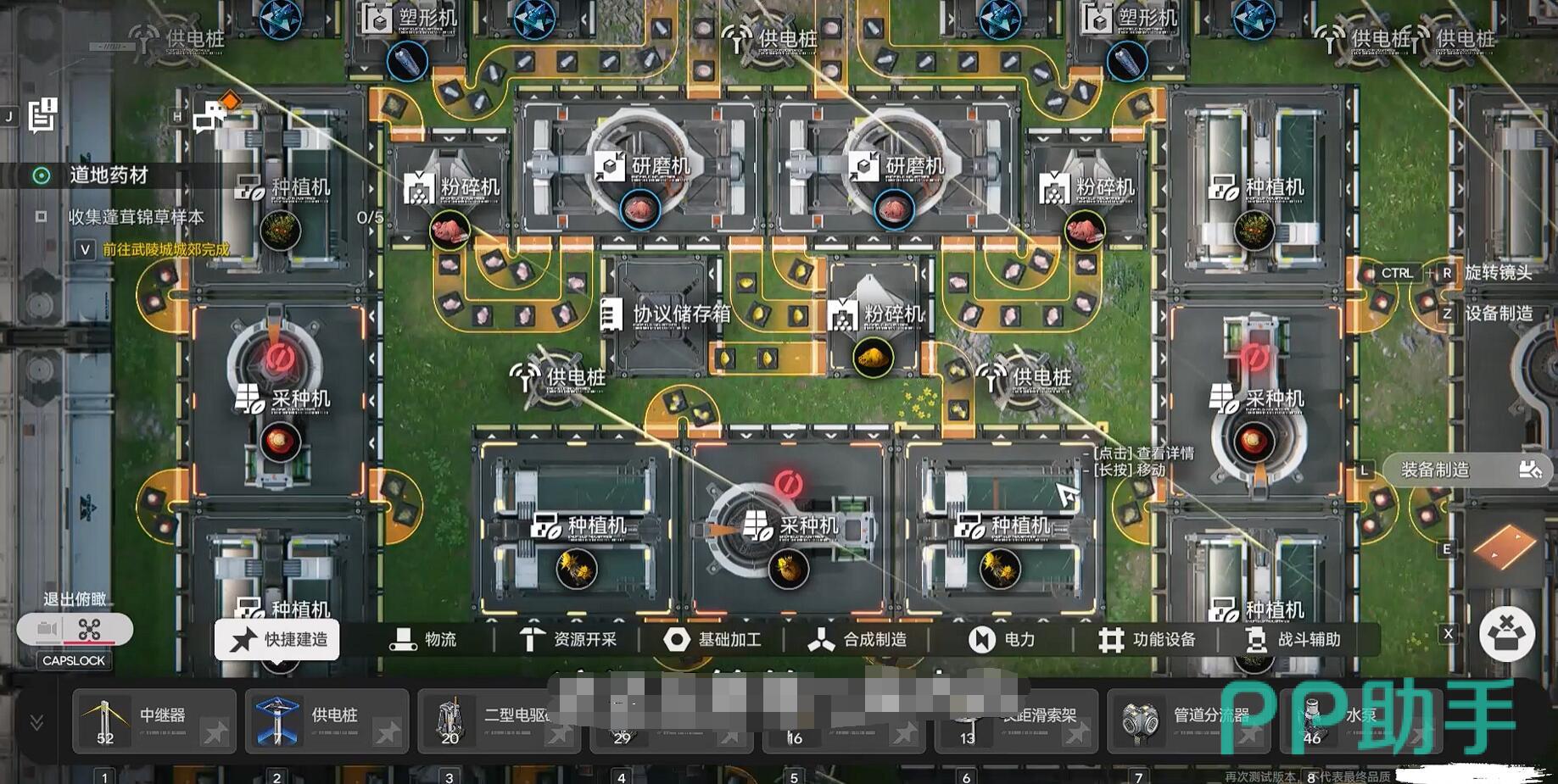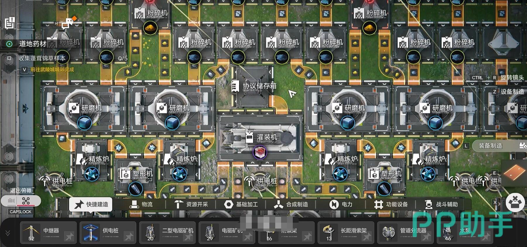 工厂体系主要由协议核心、生产线模块和电力网络三大组件构成。协议核心作为控制中枢,其周围黄色区域为有效供电范围,在此范围内可部署各类加工设备,如精炼炉与粉碎机。游戏初期解锁蓝图后,建议优先建设两条基础产线:第一条为紫金矿→精炼炉→塑型机→灌装机,用于零件生产;第二条为种植机→粉碎机→罐装机,专责药品制造。关于传送带系统,虽结构复杂,但初学者只需掌握树状分布原则即可——主干输送原料,分支负责细分工序,且主线带宽应大于支线,以防堵塞。特别提醒:当精炼炉输出端连接3条传送带时,每条效率会下降至33%,因此关键物资推荐独立布线运输。
