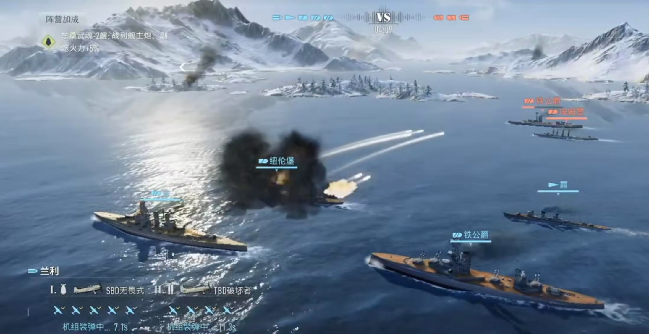 该舰以Z-23为技术蓝本升级而来,属大型化驱逐舰构型。标准排水量与主炮火力配置已接近轻巡洋舰水平:配备4门150mm主炮,最大航速达36节,并搭载3具533mm鱼雷发射管。这一组合使其兼具持续炮击压制能力与爆发性雷击威胁——尤其在对抗敌方主力舰时,鱼雷命中可造成高额结构损伤与持续进水效果。其专属主动技能“迅雷整备”可在成功触发规避动作后,概率性重置鱼雷装填进度,大幅压缩雷击间隔,形成高频次、不可预测的突袭节奏,极大提升敌方闪避策略的应对难度。
