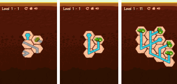 游戏中有很多不同形状的水管碎片,把这些拼接在一起就能有效达到灌溉的作用。玩家可以通过点击或者旋转的方式去做出调整,让水管可以正确的连接。游戏中有多个不一样的关卡,到了后期可能会出现一些分支或者是交叉点。有一些关卡还会有时间的限制,因此就会增加整个游戏的挑战难度。