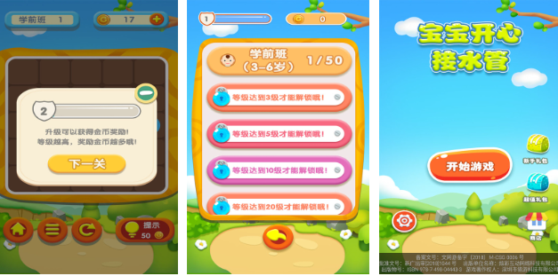 是专门为了儿童而设计的一款游戏,可以去锻炼宝宝的逻辑思维以及动手能力。在游戏的过程中就可以不知不觉的提升在遇到问题时的解决能力。游戏的界面以简洁清晰为主,整体的操作没有什么复杂之处,只需要拖动水管就可以去完成连接。不过游戏会有多个关卡,这些关卡的难度会有所区别,要想解锁还需要去思考。