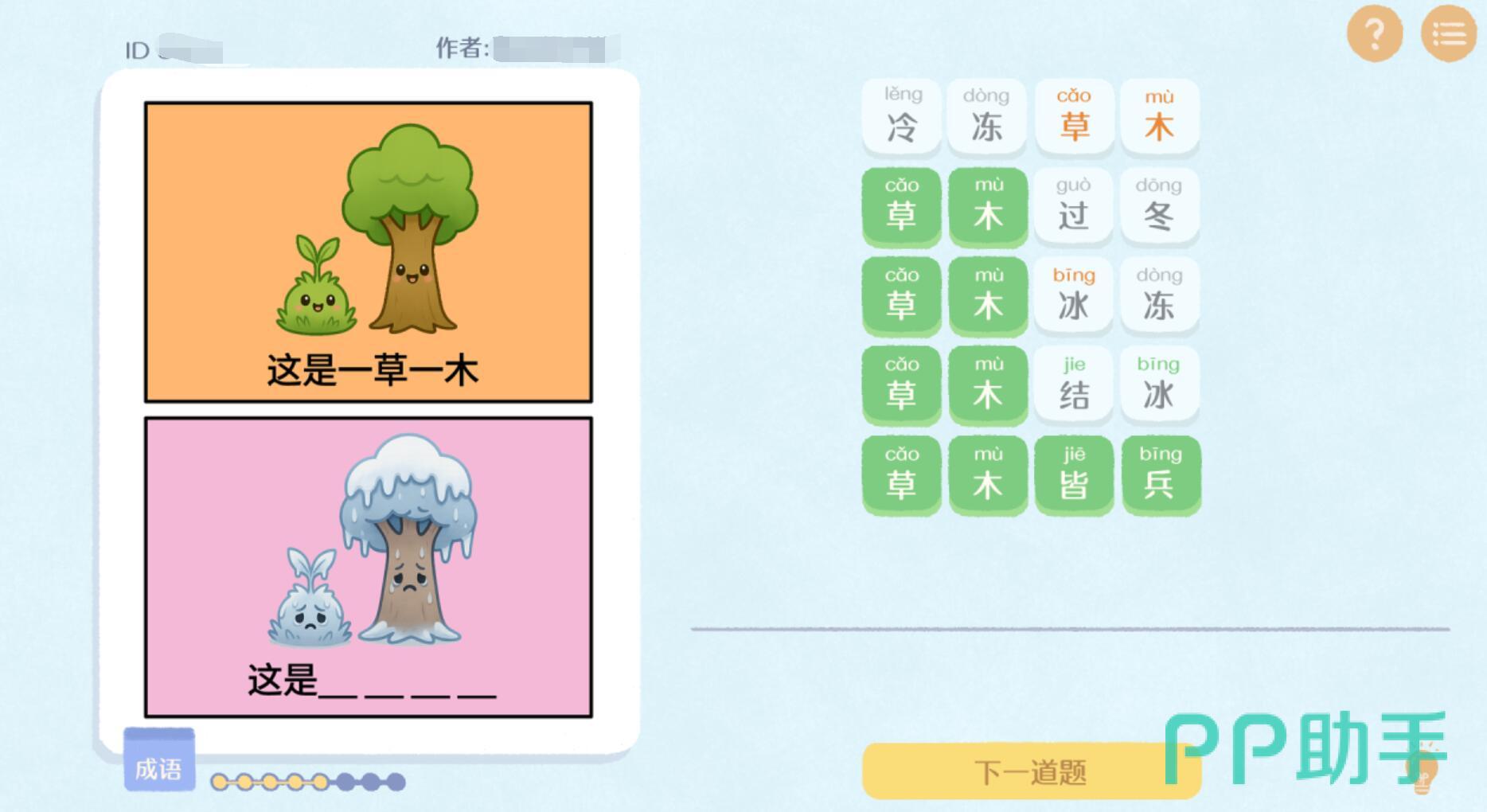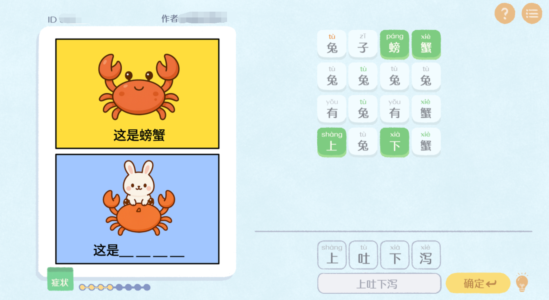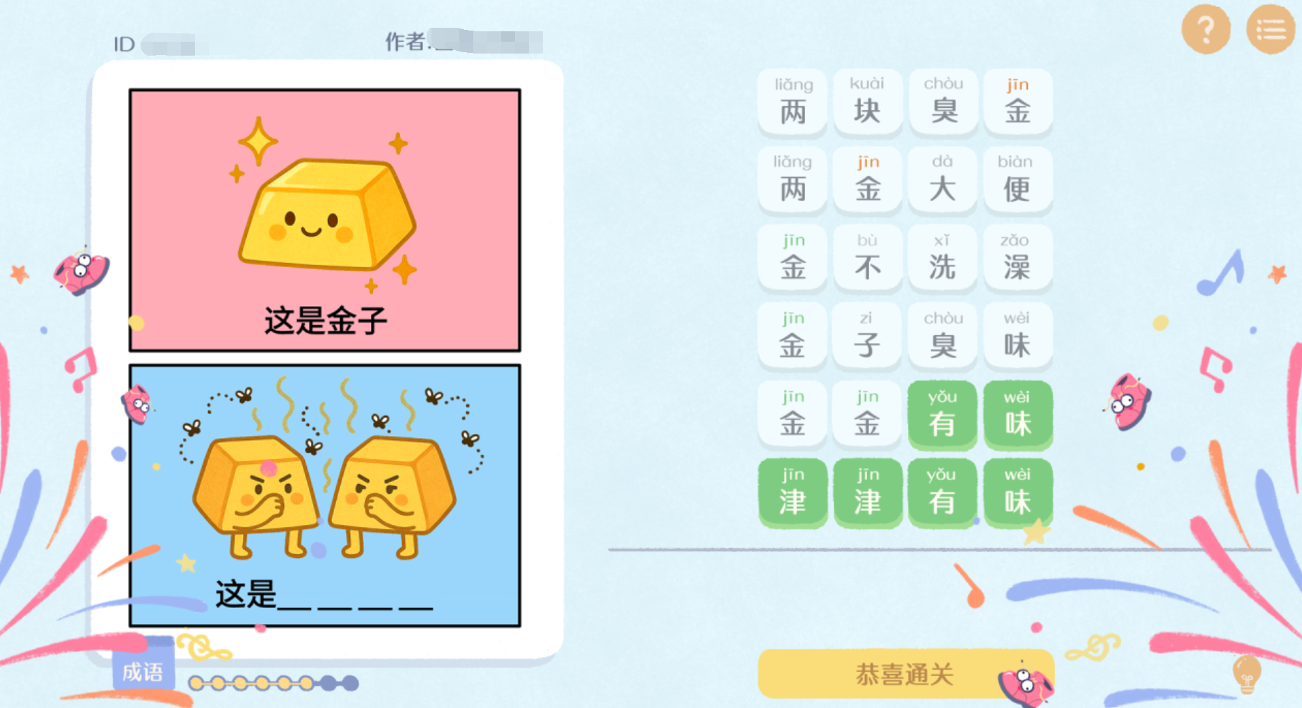 玩法机制参考经典词类游戏逻辑,采用读音+位置双重反馈系统:每次输入后,系统会明确提示每个字的发音是否正确、字形是否存在、位置是否准确,总计提供8次尝试机会,兼顾策略性与容错空间。内置灵活提示功能,避免卡关挫败;更支持玩家自主创作题目并上传至创意工坊,实现内容共创与好友间趣味互测,大幅延长游戏生命周期。界面交互注重用户自由度,提供“无字模式”等个性化设置选项,便于专注思考或调节节奏,适配不同使用习惯。