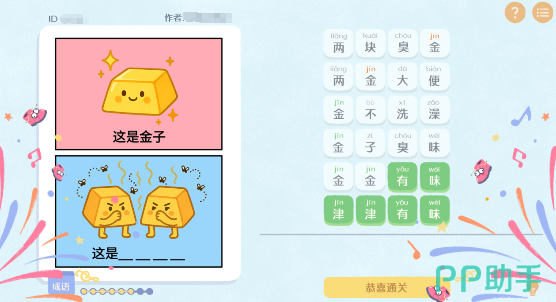 游戏巧妙融合网络流行语、中文谐音逻辑与传统成语文化,每关以原创手绘插画为载体,隐含一个妙趣横生的答案。例如:画面中一只生姜比出爱心手势,答案即为“将心比心”。无文字提示干扰,全靠图像联想与语音通感解谜,理解门槛极低,新手三秒上手。全作共设300余关,难度梯度设计合理——前期直观易懂,后期逐步增加思维跳跃性,持续激发成就感,且题型结构多样,杜绝重复疲劳感。