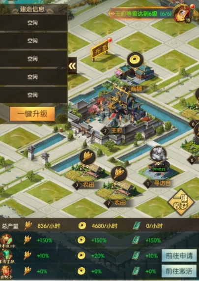 精炼石则用于提升装备精炼等级,使装备属性得到提升,米酒则可在主公达到45级后,在酒馆中招募更多稀有的武将,解锁封地后,玩家可以开垦地块、建造建筑并使用一键升级功能来快速提升建筑等级,在建造建筑时,玩家应根据实际需求合理规划布局,关注资源产量的变化确保满足自身发展的需求,后宫系统则是另一个不容忽视的部分,每日与佳丽互动可以提升佳丽等级不仅能获得馈赠奖励如铜钱等珍贵资源,还能开启天赋提升为全体武将提供加成助力战斗征战,而比武招亲则是获取资源的另一种途径玩家可以挑选已解锁的佳丽参与比赛赢取铜钱、天赋丹及佳丽碎片等丰厚奖励从而提升自己的实力。