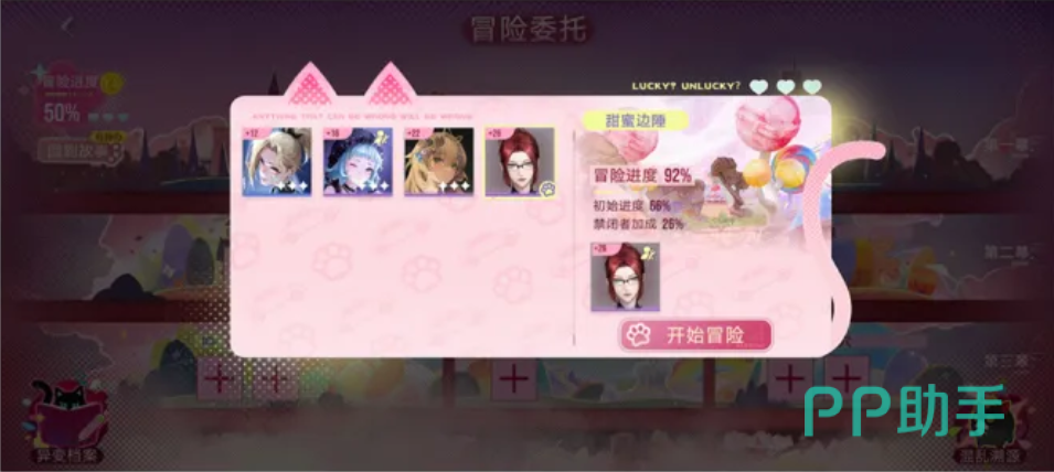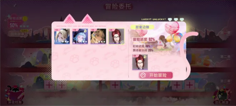 活动包含双轨推进结构:剧情模式与冒险模式。当主线剧情推进至指定节点后,冒险模式自动解锁。玩家可通过活动界面左侧的模式切换按钮,在两种体验间自由切换。进入冒险模式后,需指派禁闭者前往不同区域执行探索任务,每名禁闭者均具备独特属性加成,影响整体冒险进度增长效率。